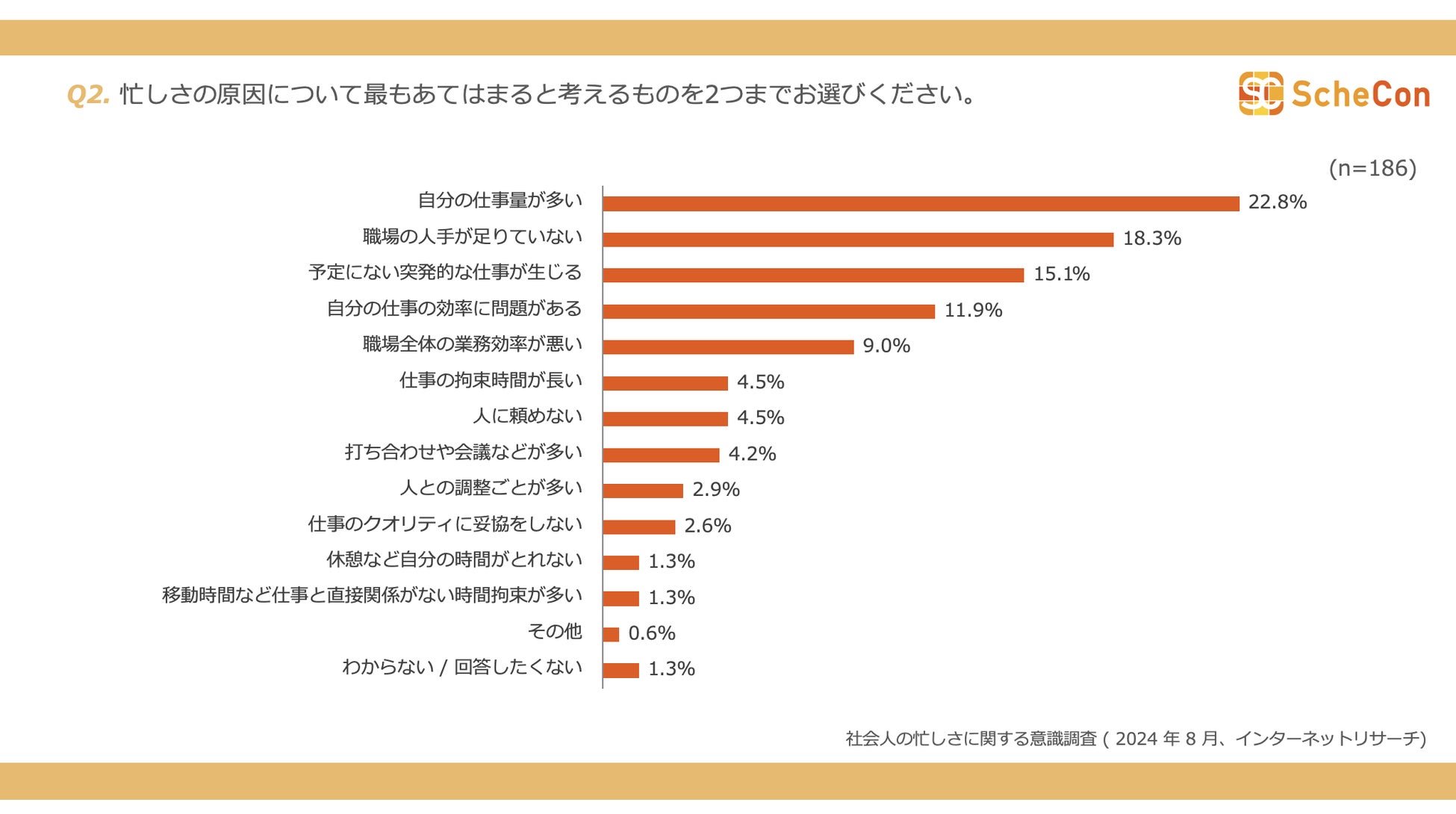 Q2. 忙しさの原因について最もあてはまると考えるものを2つまでお選びください。