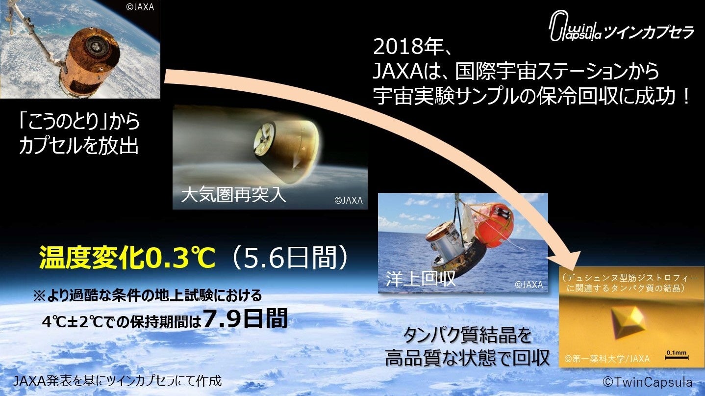 宇宙航空研究開発機構(以下、JAXA)発スタートアップの株式会社ツインカプセラ(本社:茨城県つくば市、代表取締役社長 宮崎和宏、以下、ツインカプセラ)は、2026年3月8日、設立5周年を迎えました。2021年の会社設立以来、宇宙で実証された断熱保冷技術の社会実装を目指し、超高性能断熱保冷容器「BAMBOO SHELLter(バンブーシェルター)」の開発および医療・創薬分野における検体輸送の高度化に取り組んでまいりました。これもひとえに関係者の皆様のご支援の賜物と、心より御礼申し上げます。次の5年は、国内外での展開を加速し、次世代コールドチェーンの社会実装を一層推進してまいります。引き続きご支援を賜りますようお願い申し上げます。