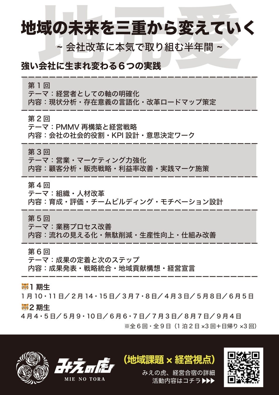 三重から地域と時代を動かす経営者コミュニティ「みえの虎」の中核プログラムとして、