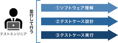 「AGEST式探索的テスト」では、以下の①~③のすべてを「並行」して実施します。重要な工程となる①と②については、経験豊富な当社テストエンジニアが、案件それぞれの開発内容や製品仕様を考慮して対応いたします。