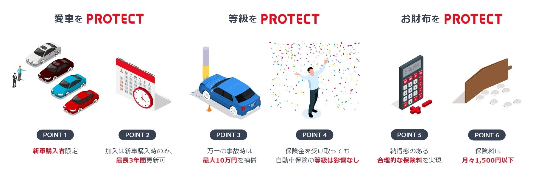 本保険では「愛車」「等級」「お財布」をPROTECTします。