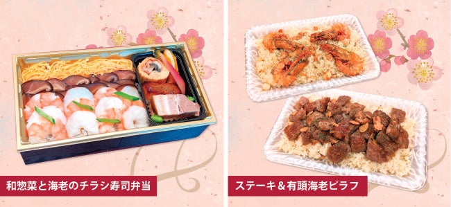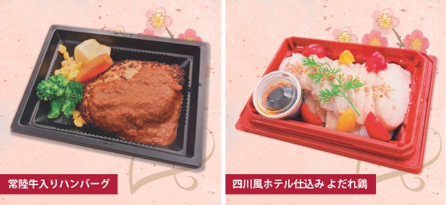 常陸牛を贅沢に使った「茨城県産 常陸牛入りハンバーグ」、和食料理長熟練の技術が光る「銀ムツの西京焼き」、ポテトサラダの概念を覆すコク深い味わい「9ヶ月熟成じゃがいものポテトサラダ」等の過去出店時の人気メニューに加え、アスパラや菜の花等の春の食材を使った新規惣菜メニューも複数取り揃えております。また、グループホテル・テラスイン勝田1階にあるレストラン「米寿」の5つ星お米マイスター厳選米でつくる特製弁当や、季節の山海の幸を繊細な味付けで仕上げる「彩り2段弁当」等のホテルメイド弁当の他、ボリューミーなサイズのステーキ&海老ピラフや迫力満点の骨付き「トマホークステーキ」といったパーティーフードもラインナップしております。