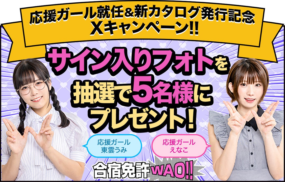 “えなこ&東雲うみ”が「合宿免許WAO!! 」応援ガールに就任!新カタログは10月15日よりファミリーマートに設置。 公式Xにてキャンペーンを開催中♪
