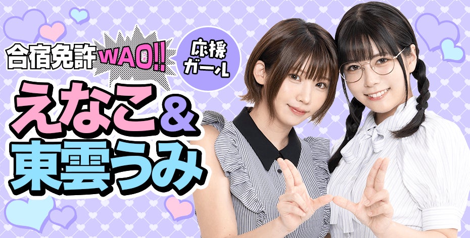 2024年10月15日より、応援ガールえなこさんに加え、新応援ガールに東雲うみさんが就任。全国のファミリーマート店内放送では二人のハッピーかわいいオーラで合宿免許WAO!!をPR♪