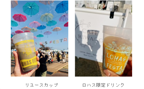 「LOHAS」とは、LIFESTYLES OF HEALTH AND SUSTAINABILITYの略で、心身の健康、持続可能な社会や地球環境を大切に考え、心豊かに暮らす生活スタイルです。ロハスフェスタのテーマは、「みんなの小さなエコを 大きなコエに」。SDGsの観点から環境に配慮し、会場では多くのお客様がマイボトルやエコバックを持参されました。また、当日は繰り返し洗って使えるリユース食器を販売し、使い捨てゴミ削減に取り組むことで、少しでも「ロハス」のことや「環境」のことを⾝近に感じていただきました。