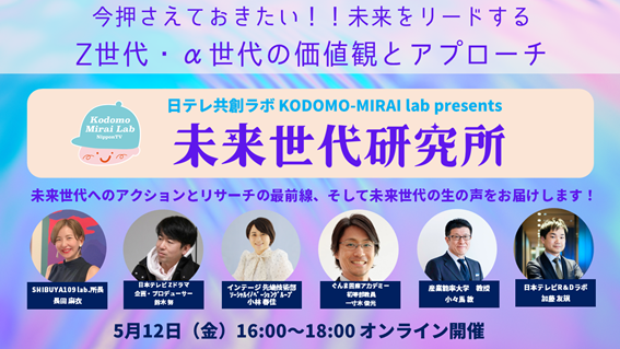 5/12(金)開催!未来世代の価値観とアプローチ方法をキャッチ!KODOMO-MIRAIラボpresents『未来世代研究所』