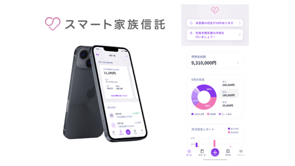 スマート家族信託は、家族信託の組成コンサルティングを専門家が行うだけに留まらず、信託契約締結後に信託したお⾦や資産をアプリで簡単に管理することができる、コンサルティングとSaaSプロダクトを掛け合わせた日本初※のサービスです。