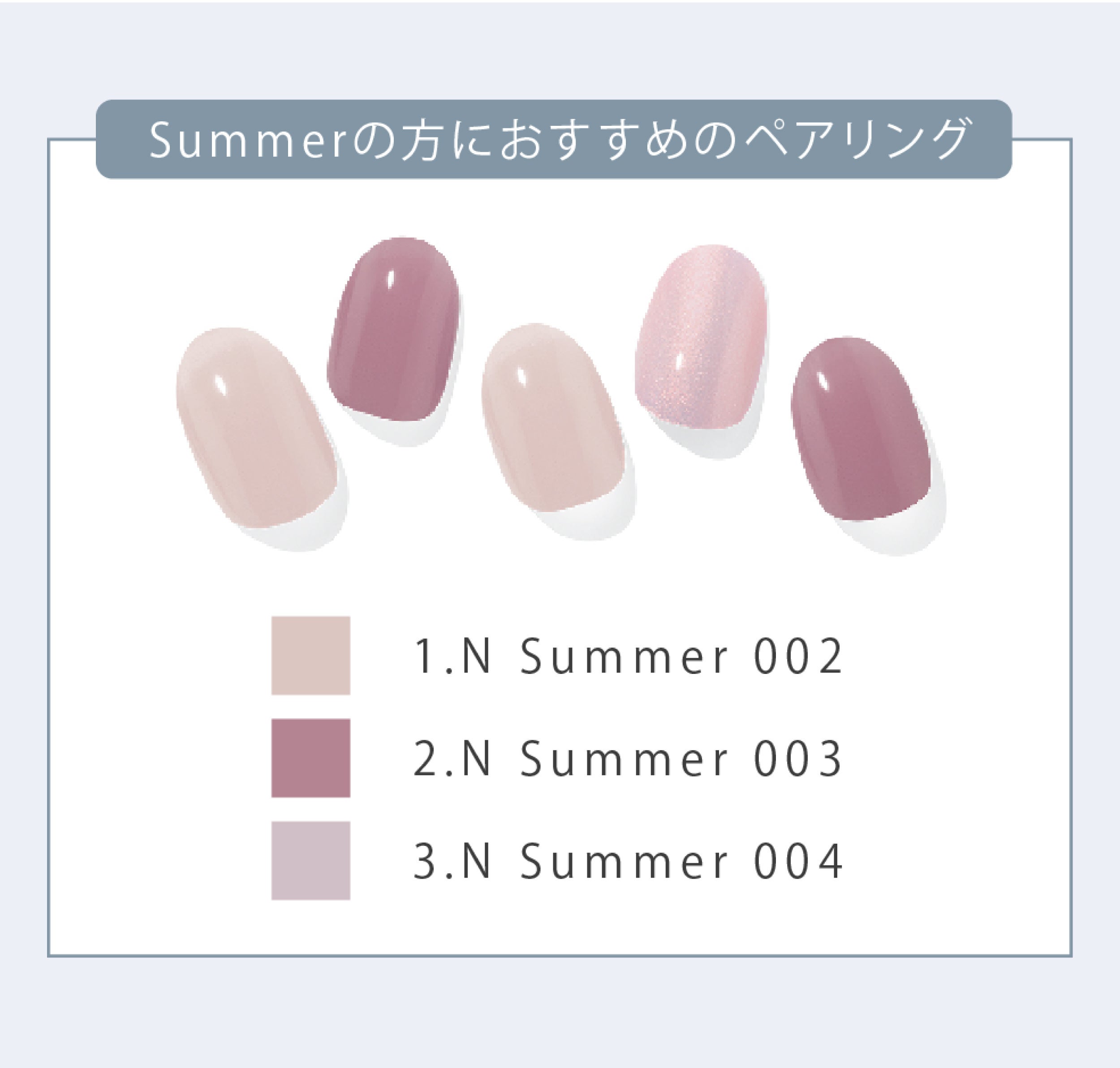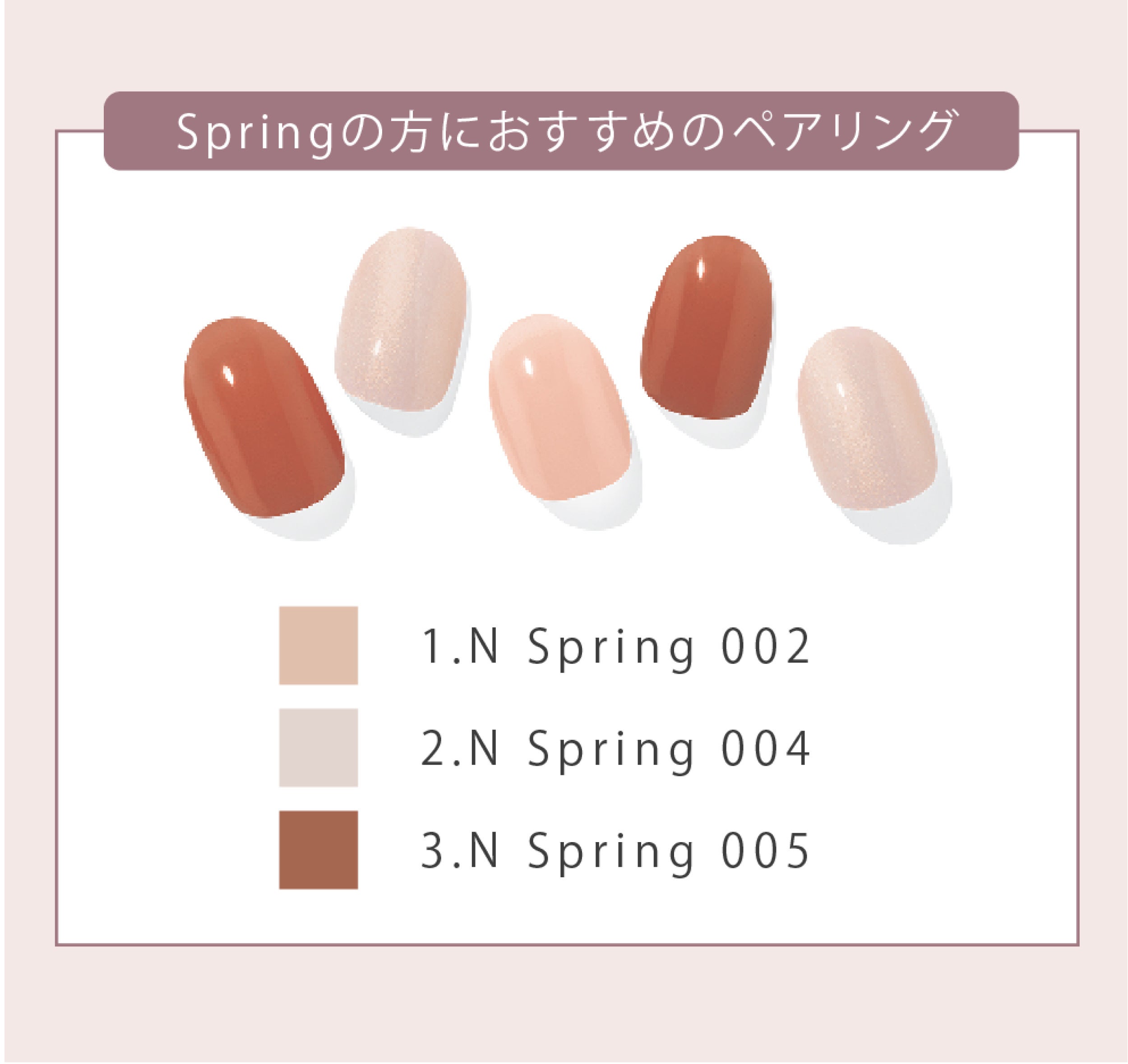 - パーソナルカラーに沿ったネイルペアリングで、もっと自分に合うカラーを楽しんで。