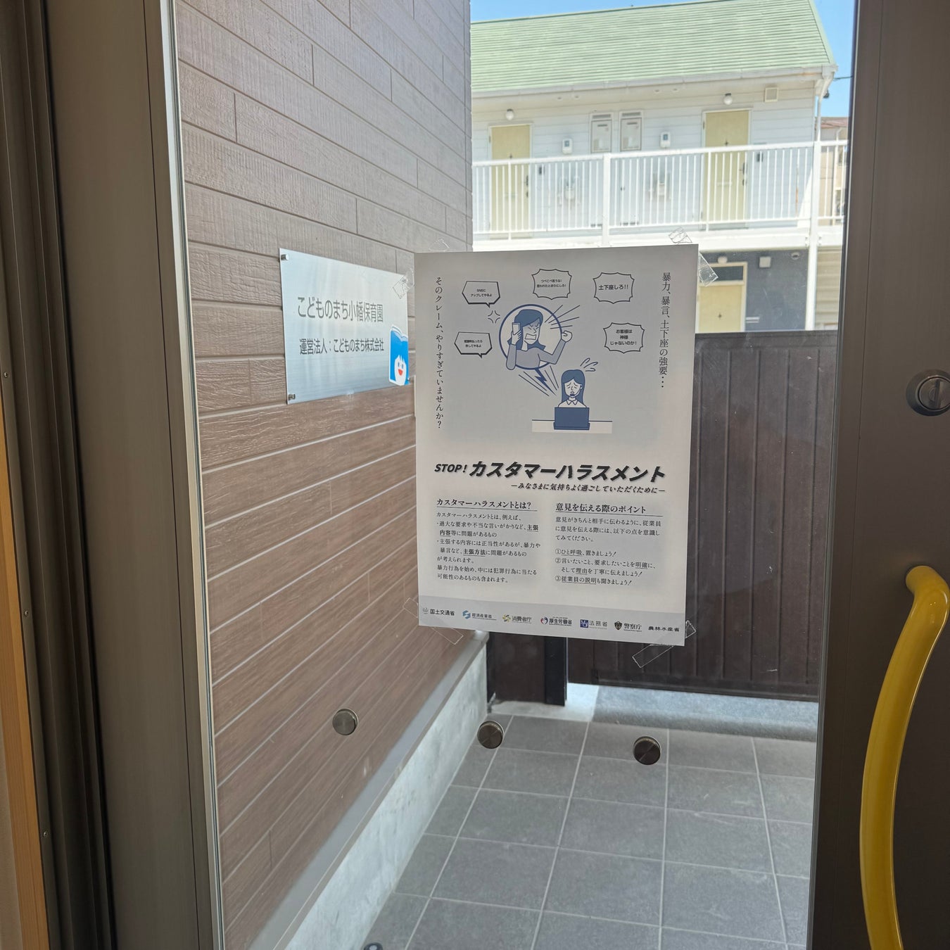保育士への不当な要求や言動に対する明確な方針・規定を定め全職員へ周知します。また、保護者が見える箇所に「カスハラ防止ポスター」を掲示し、啓発活動に努めました。