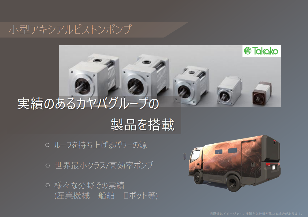 空間拡張機能…油圧シリンダー及び小型ポンプで車体が縦・横に拡張