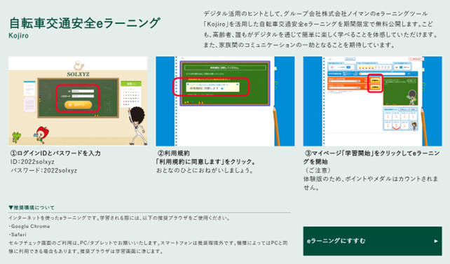 株式会社ソルクシーズ(本社:東京都港区、代表:長尾 章、以下 当社)は、2022年「デジタルの日」に向けた特設サイト「Digital Days by SOLXYZ Group」を開設しましたのでお知らせいたします。特設サイトでは、大人も子どもも楽しめる「自転車交通安全eラーニング」を期間限定で無料公開しました。是非この機会に、ご家族皆様で“ふれよう!#デジタルのチカラ”をご体験ください。