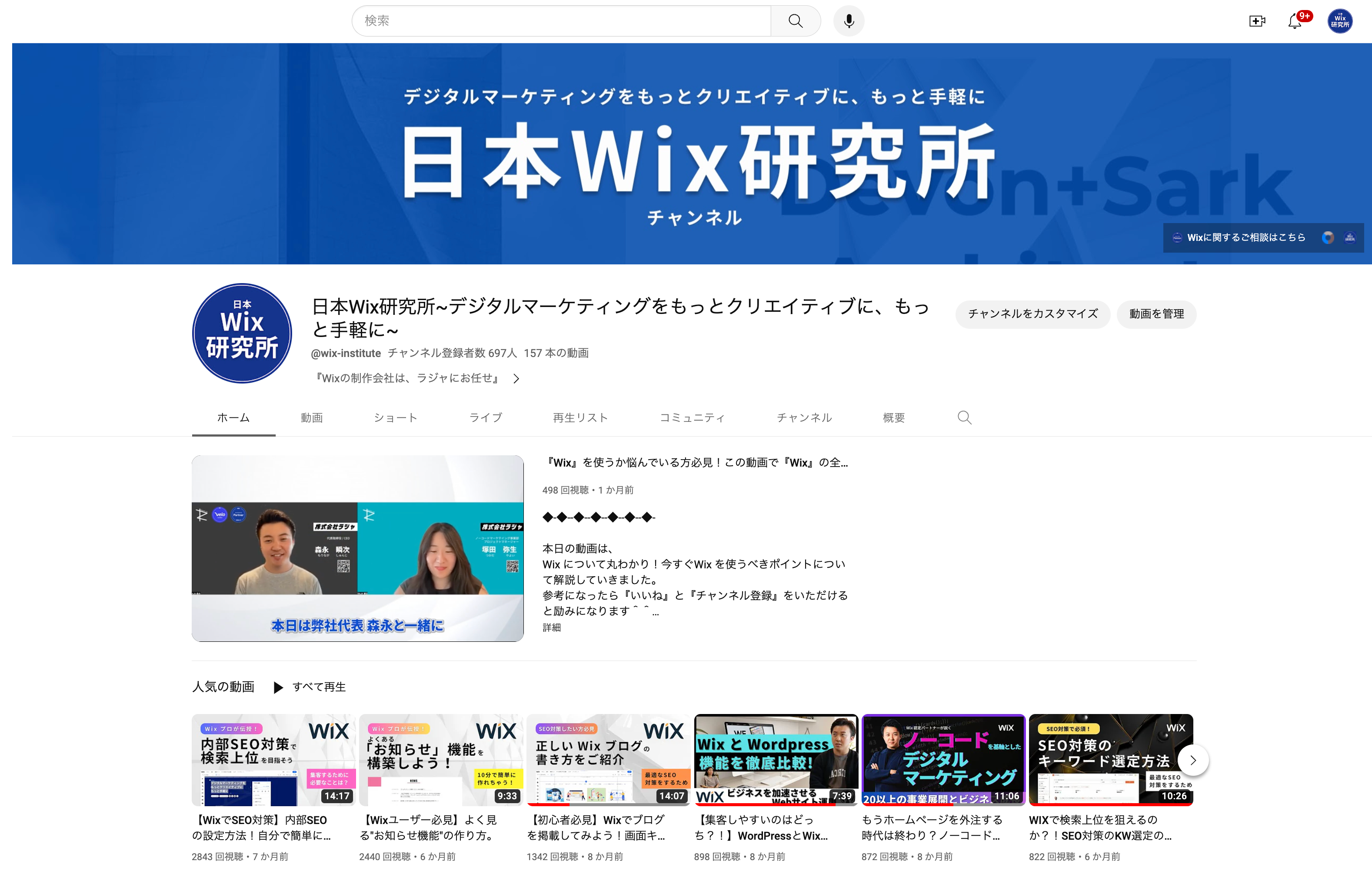 Wixに特化したYouTubeメディア「日本Wix研究所」のチャンネル登録者が700人を超えました。