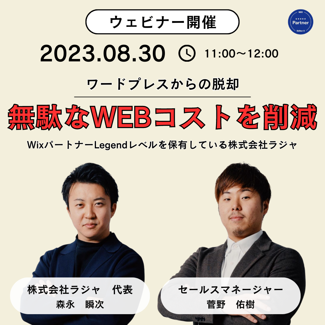 【8月30日 11:00 AM】WixパートナーLegendレベルを保有している株式会社ラジャが、ホームページマーケティングの未来について無料のオンラインセミナーを提供します。