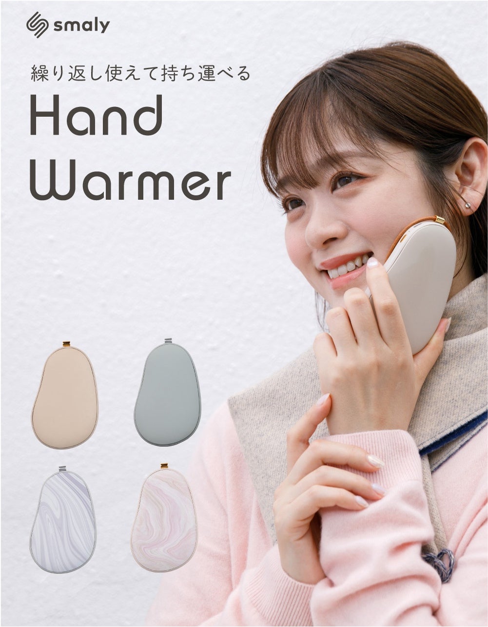 “ライフスマイル”に寄り添った製品の企画開発をおこなう株式会社NAKAGAMIは、電子雑貨を中心とした自社ブランド「Smaly」スマリーより、温かさをいつでも手軽に持ち運べる、充電式カイロを発売します。寒い時はもちろん、心地よい暖かさのため、関節痛や生理痛などの緩和にも好評いただいております。(昨年モデルお客様の声)
