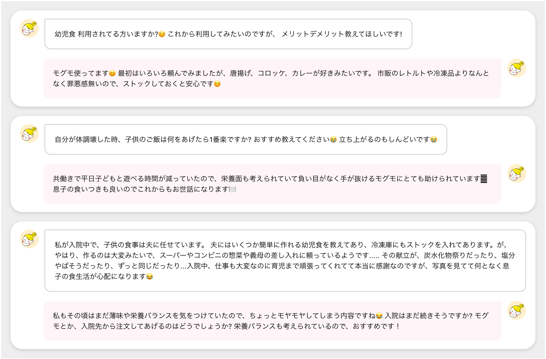 mogumoは、今後も子育て家族をはじめ、より多くのご家庭に「子どもに笑顔 あなたにゆとりを届ける」幼児食として、全ての子育てをする方のパートナーになるべくサービスを提供してまいります。