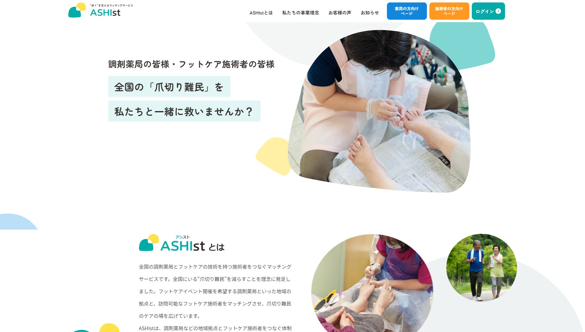 調剤薬局×フットケアで地域貢献へ!「ASHIst(アシスト)」マッチングプラットフォーム オープンのお知らせ