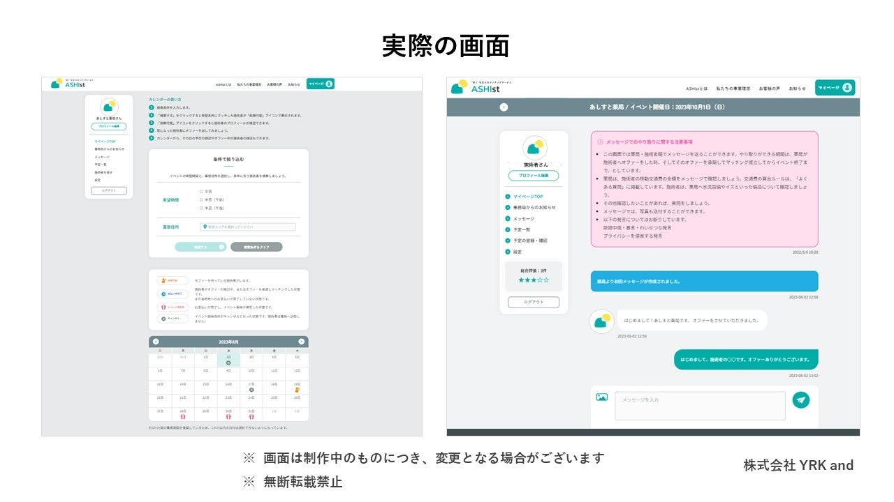 施術者探しからマッチング、イベント開催日に向けての薬局・施術者間のやりとり、ASHIst利用料金の決済など、すべて本プラットフォーム内で完結することができます。なお、登録は無料です。