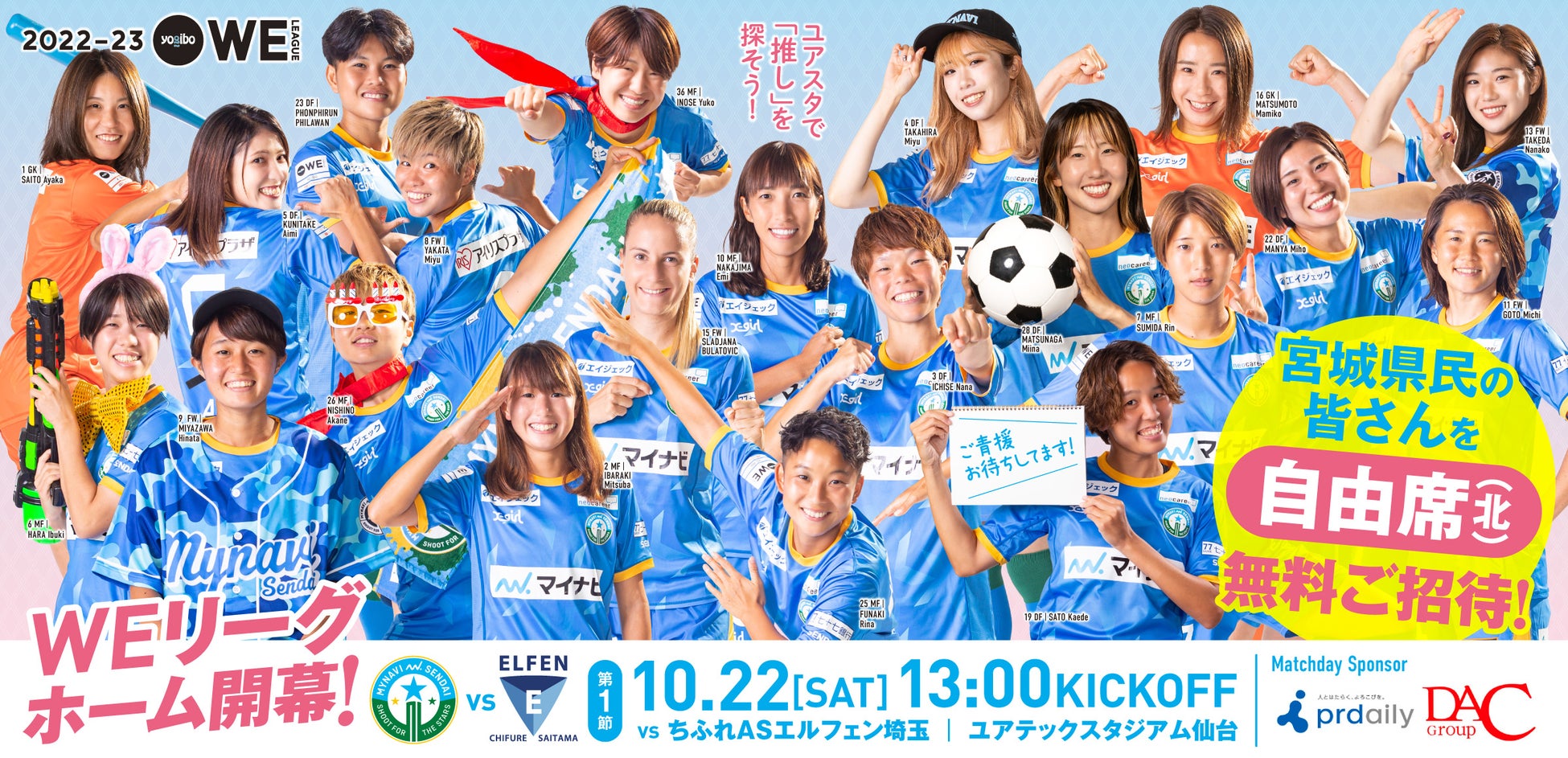 【宮城県民 自由席北無料ご招待】10/22(土)YogiboWEリーグ 開幕戦 EL埼玉戦 ホームゲームのご案内