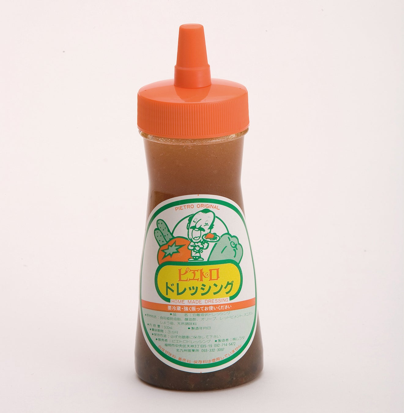 ピエトロドレッシングのはじまりは1軒のパスタレストラン。「洋麺屋ピエトロ」が福岡市・天神にオープンしたのは1980年。たった6人でスタートした小さなレストランで、麺が茹で上がるまでの時間、前菜代わりに出していたサラダ。そのドレッシングが「おいしい!」「ピエトロのドレッシングだと、子どもや主人が野菜を残さず食べるから、わけてほしい」と評判になり、ワインの空きビンを洗ったものに詰めてお渡ししたのが、ピエトロドレッシング販売のきっかけです。
