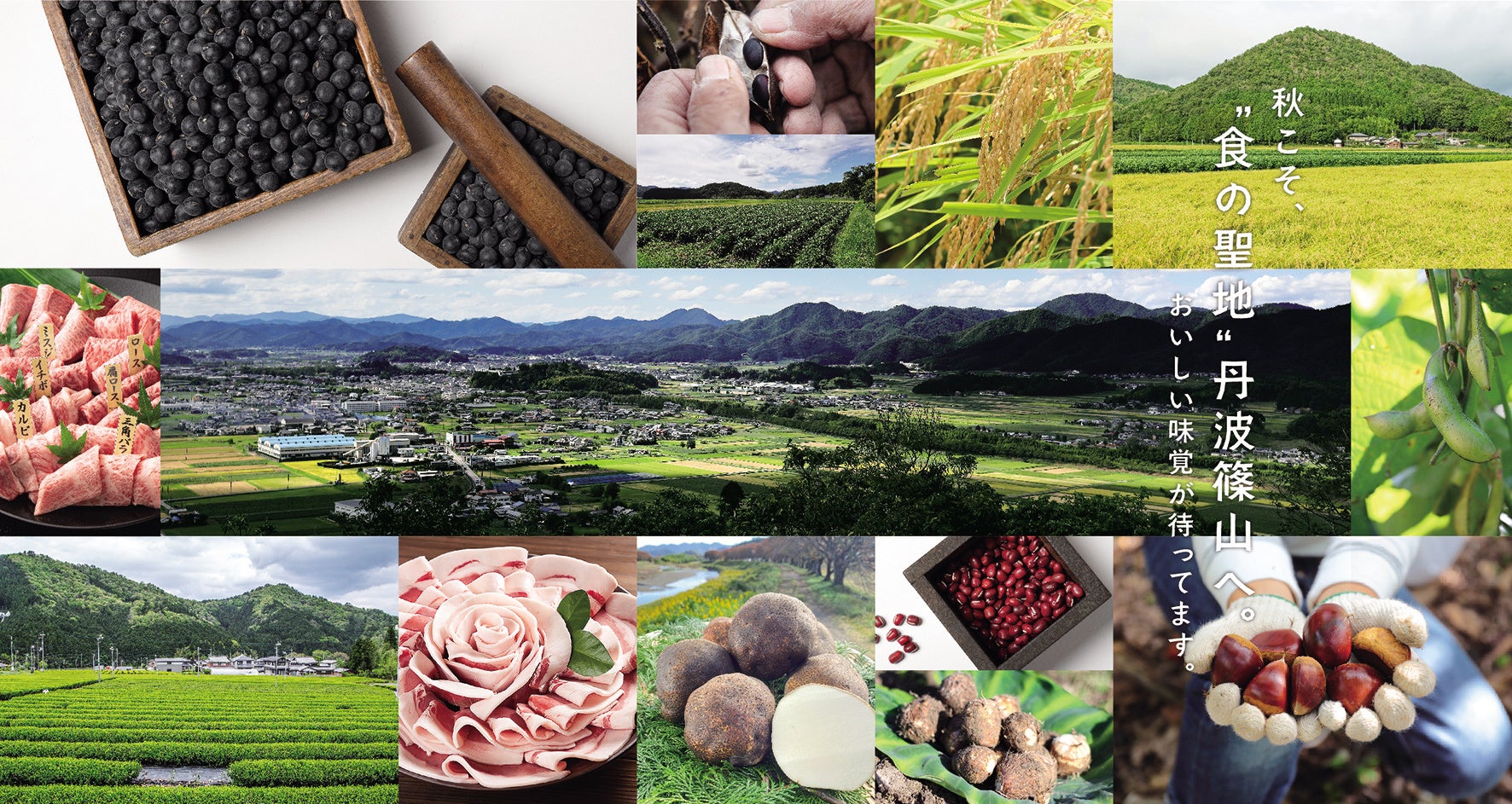 お正月に食べることでよく知られている「丹波黒大豆」ほか、“食”の魅力が多いエリアとなっています。丹波篠山の美しい風景とともに、秋の季節にふさわしく丹波黒大豆や栗、山の芋や猪肉、牛肉など、美味しい農作物をご紹介しながら、食欲の秋のこの季節に「食の聖地 丹波篠山」を感じていただきたく、今回の企画実施に至りました。
