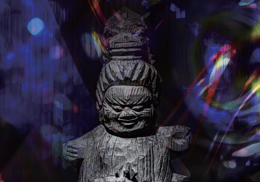 現在私たちの前に突きつけられている、社会の変化、地球の変化を考える時、木に囲まれた暮らしをしてきた飛騨高山の⺠がどのような文化を育み、その生態系を維持してきたか、そこに生じた⺠藝や伝承とは何か、という落合氏の中に湧き上がった問いを発端に、この地の縄文時代の文化や精神性にまでも遡り、思いを馳せることで、より普遍的に、この時代のデジタル以降の定住する遊牧性の鍵となる気づきや美学を手繰り寄せるこことで描いた世界の風景がご覧いただけます。