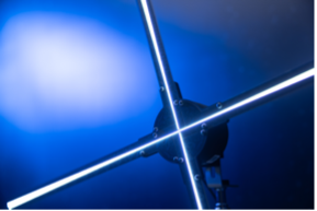 3Dファントムは株式会社Life is Styleが提供する、LED光源がライン状についたブレードを高速回転させ、光の残像によって映像を映し出し、インパクトのある3D映像を肉眼で体験できる3Dホログラムディスプレイです(専用メガネ等は不要)。