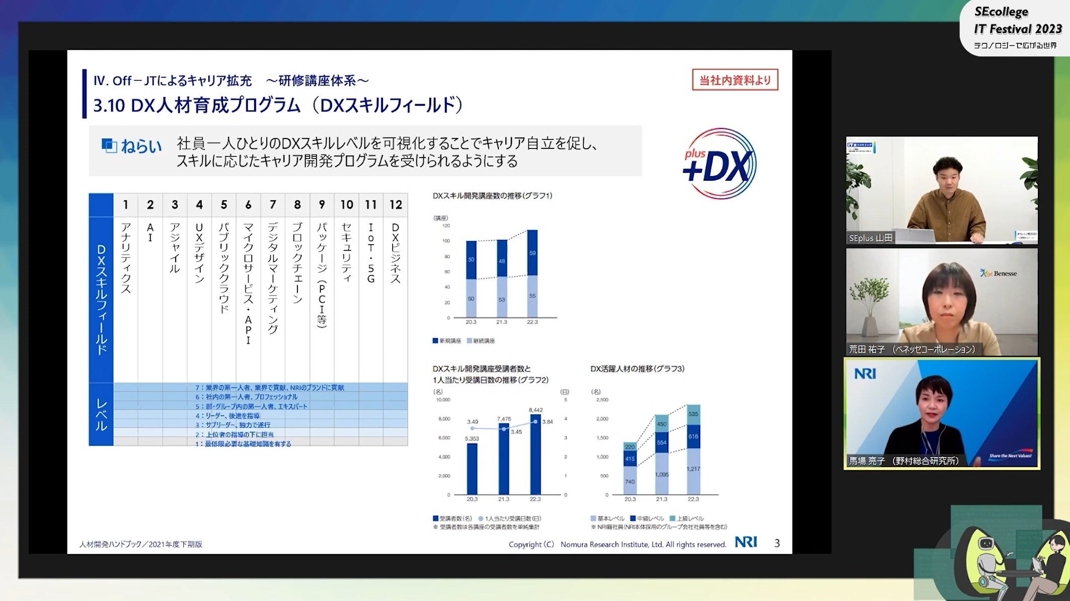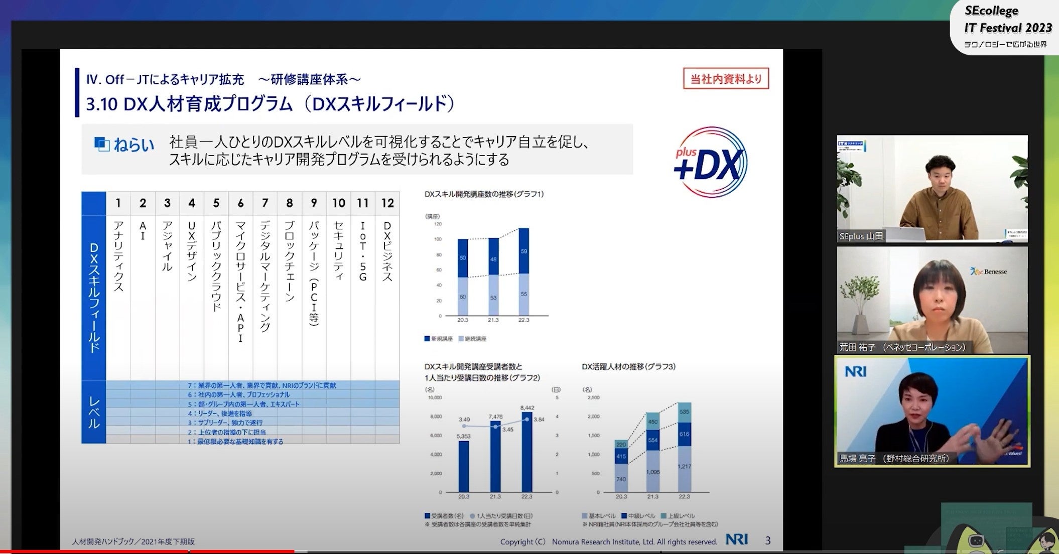 ベネッセコーポレーションでは年間で 3 日間のリスキル休暇を作ったり、研修内容を業務に近づけ、すぐに現場で活かせるよう、内容も工夫をされているとのことでした。