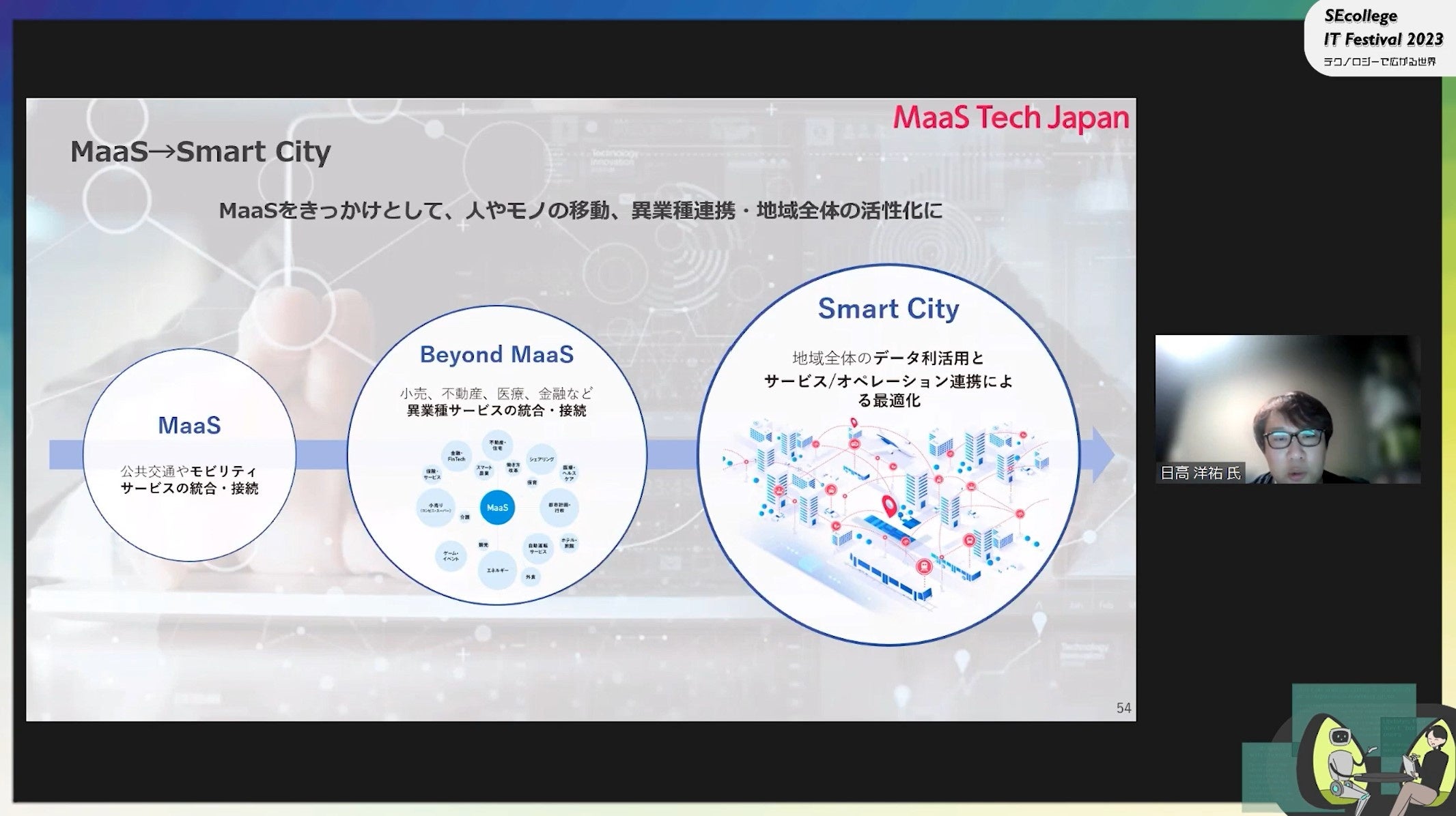 スマートシティでは、その地域全体のデータ利活用とサービスやオペレーション連携による最適化がされ、その中で交通の統合があるため、MaaSという概念は当たり前のものとして使われなくなってきているようです。
