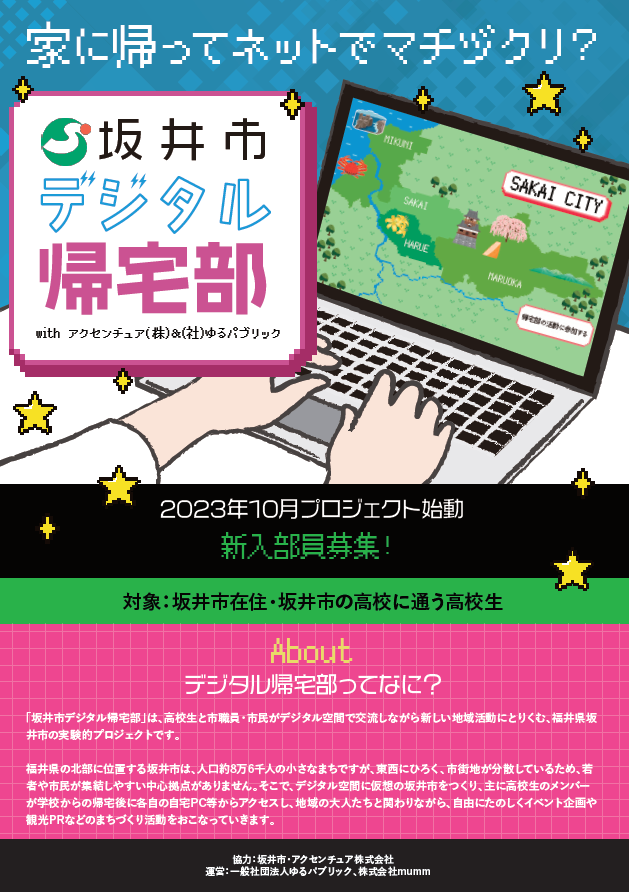 坂井市にゆかりのある高校生を募り、ゆるいコミュニティのなかでまちへの誇りを養ってもらうことを目的とする坂井市の実験的なプロジェクトです。