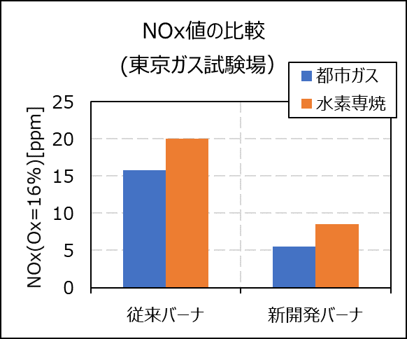 ました。東京ガスの実験場で、天然ガスバーナより低いNOx値