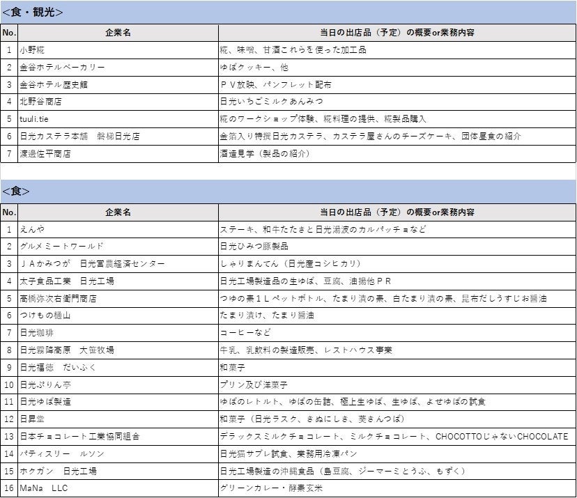 【後援】日光商工会議所/足尾町商工会/足利銀行/栃木銀行/鹿沼相互信用金庫/フードバレーとちぎ推進協議会/公益財団法人栃木県産業振興センター/栃木県よろず支援拠点/あいおいニッセイ同和損害保険株式会社/一般社団法人日光市観光協会