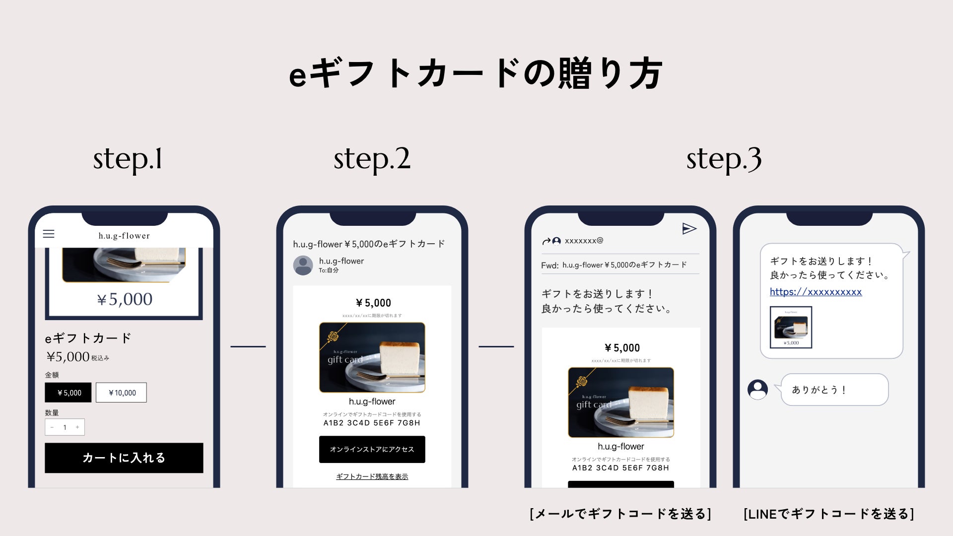 h.u.g-flowerのeギフトカード:https://hug-flower.and-and.co.jp/products/gift-card
