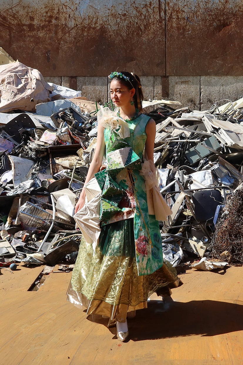 制作したドレスとムービーは、北海道にあるリサイクルアート展実行委員会が主催する、リサイクルの可能性や未来環境への想いをカタチにしたアート作品のコンペティションである第9回リサイクルアート展(https://recycle-art-exh.jp/)へ応募し、優秀賞を受賞しました。作品タイトルは「きばんを纏う」。コンセプトは「もう一度スポットライトを当て、リサイクルをファッショナブルに纏う」。本活動により生まれた作品が社会的に評価されました。