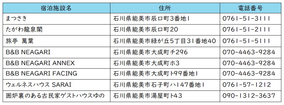 石川県・富山県・福井県にお住まいの方を対象に、能美市内の宿泊施設を利用した際に、宿泊代の助成を行う「能美市で能ん美り(のんびり)宿泊キャンペーン」を実施しています。