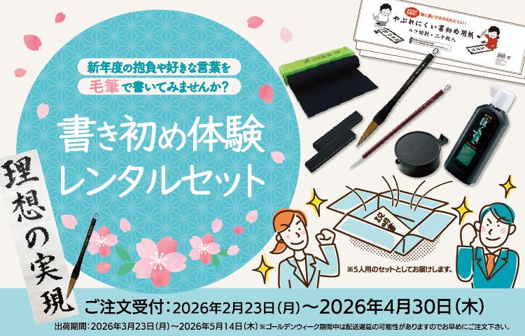 2025 年に実施し、多くのご好評をいただいた書き初めレンタルサービスの第2弾を開始しました。2026 年2 月23 日(月)予約開始、2026 年3 月23 日(月)より順次出荷開始。