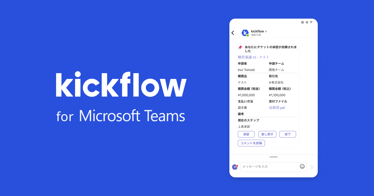 クラウドワークフローの「kickflow」、Microsoft Teamsのチャットへの通知・承認が可能に