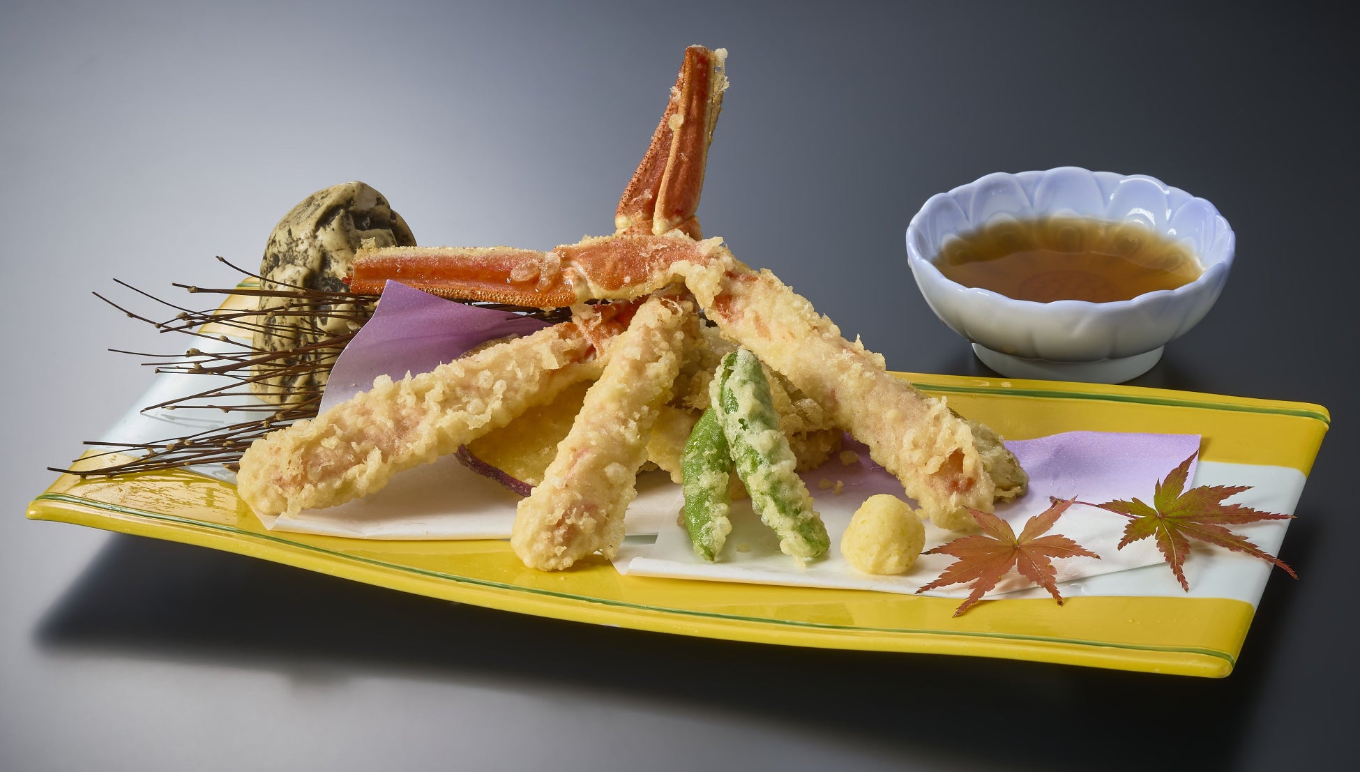甘みたっぷりのずわい蟹を天婦羅に。サクサクの衣でお召し上がりください。