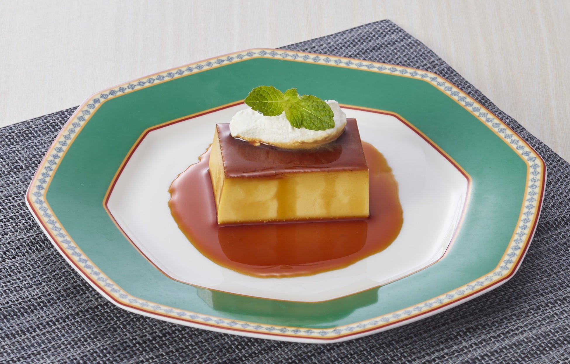 ブランド卵「ヨード卵・光」の卵のコクとほろ苦いカラメルが相まった深い味わい。お店で手作りした、昔ながらの懐かしいカスタードプリンです。