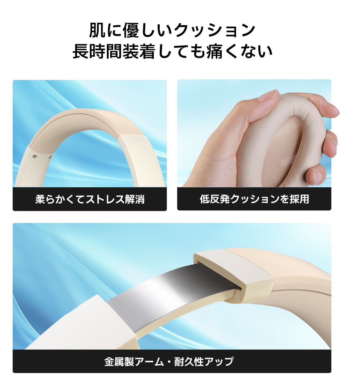 イヤーパッドは低反発クッション素材を使用し、長時間の使用でも耳に負担を感じさせない快適さを実現。さらに、折り畳み可能なので、持ち運びも簡単です。