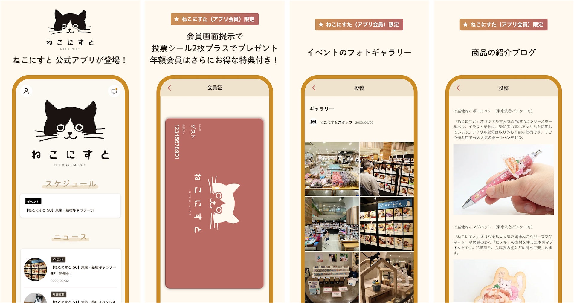猫好きのためのイベントにアプリでのコミュニケーション手段を加えることにより、全国各地で開催されるイベントをご自宅でも楽しめるようになります。また、実際にご来場される際もアプリで最新情報や特典が得られるため、より充実した体験が可能となります。