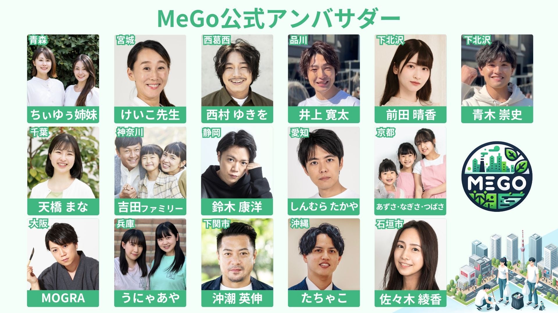 株式会社七色に所属する様々なタレントたちは、アンバサダーになり新しい社会課題を解決する活動の一環としてMeGoを利用し、それぞれの活動をSNSで全世界に発信します。また個々のタレントによるプロモーション活動にMeGoを利用することで、あらゆる世代からの社会的関心を得られます。地域社会の活性化により、新たな経済活動を生み出すことを目的とし、このたび、パートナー契約の運びとなりました。
