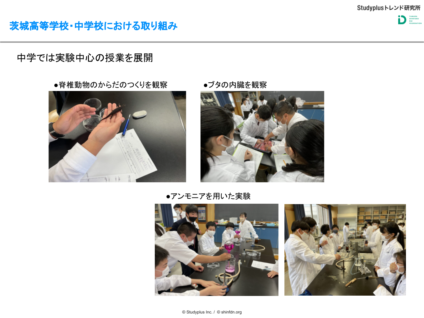 本校の事例としては、中学校では「理科」とまとめずに、物理・化学・生物・地学という形でかなり細分化して授業をしています。その中で実験を中心にした授業を展開しながら、中山さんのお話にもあったニュートリノのように、学問的な深さ・おもしろさに触れてもらって、なるべく暗記科目と思わせないような教育を行っています。