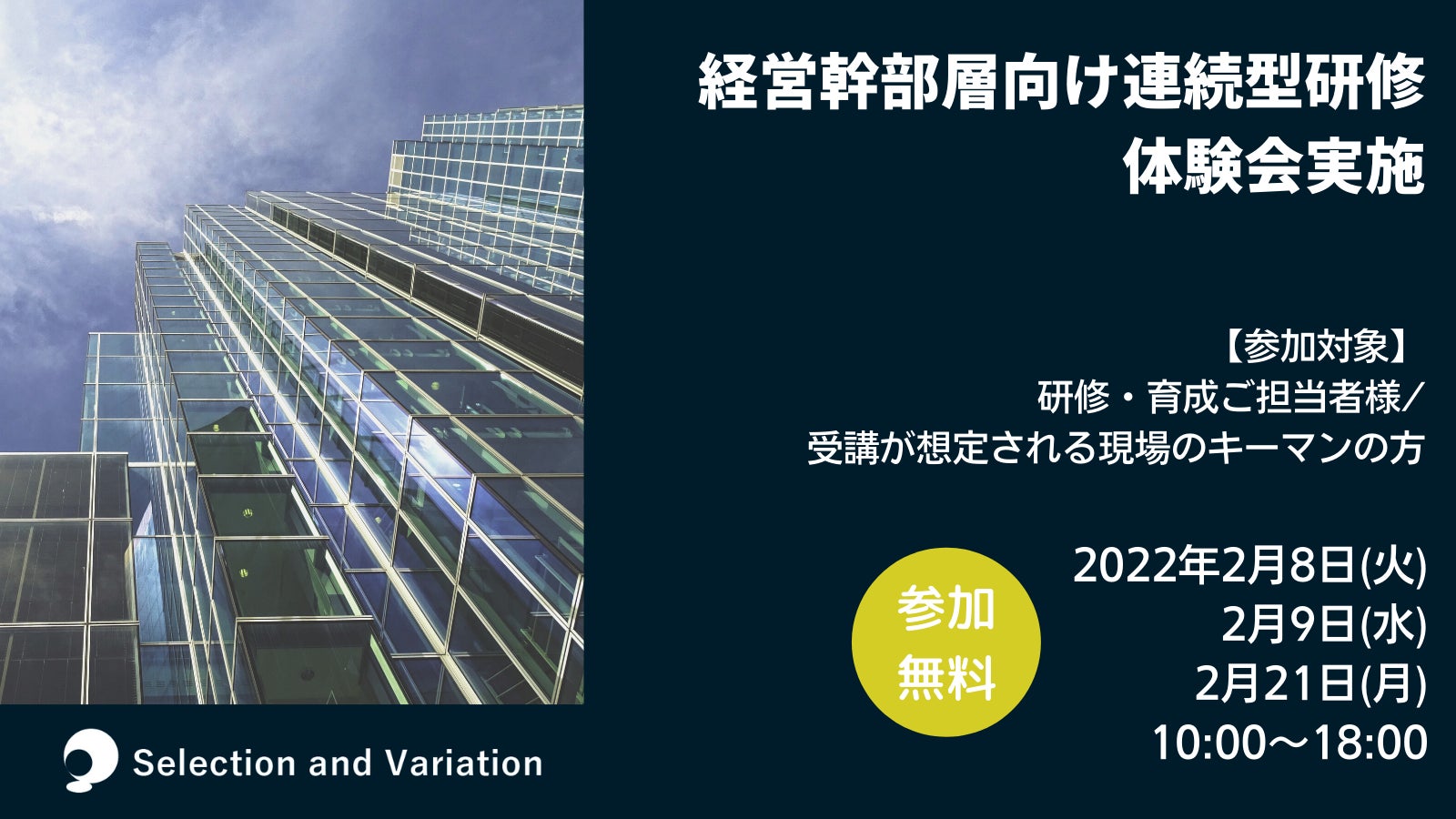 【2022/2/8、2/9、2/21限定開催】経営幹部層向け連続型研修 無料体験会実施のお知らせ