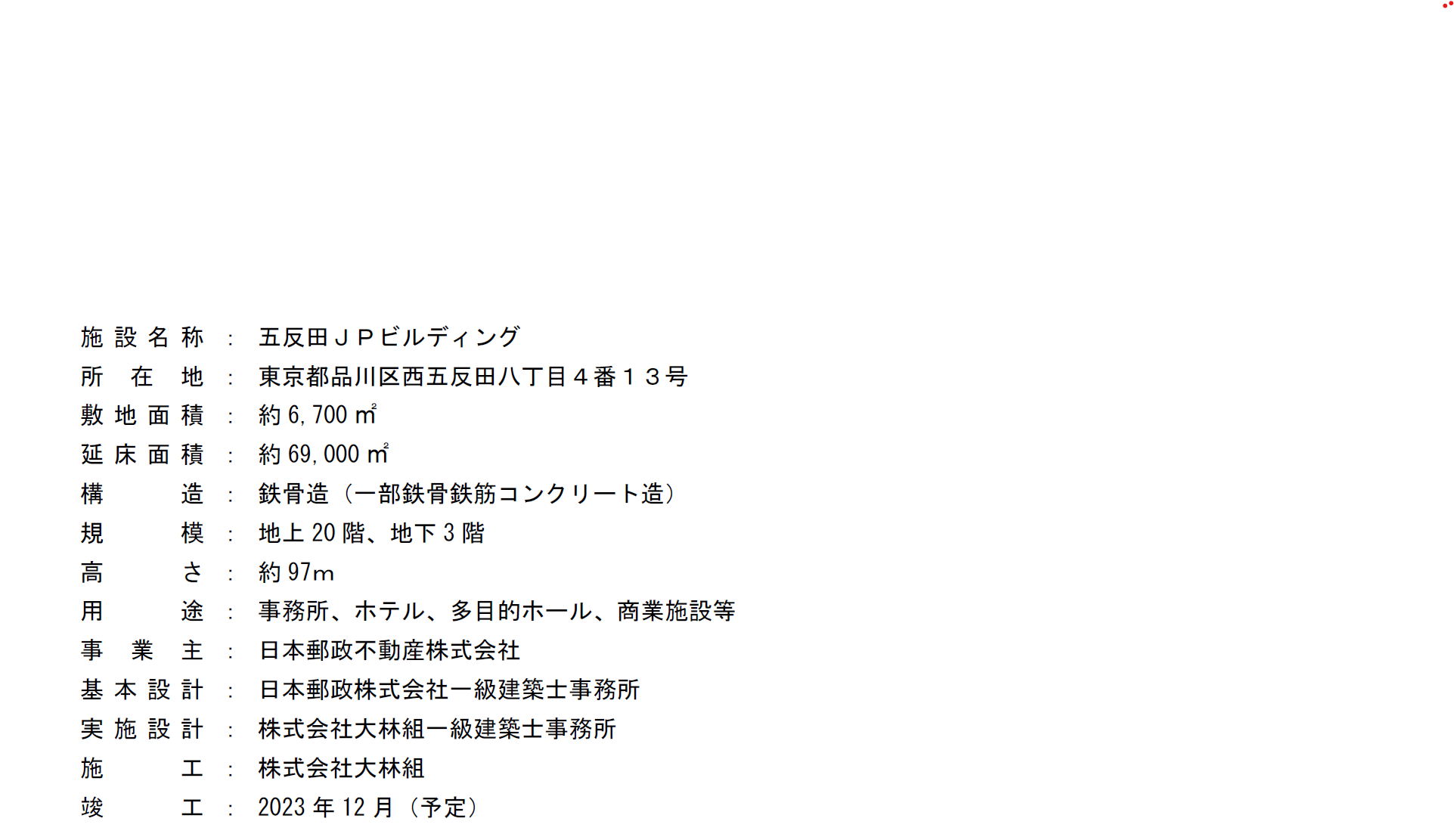 2023年12月竣工予定の大規模複合施設「五反田計画(仮称)」の建物名称を「五反田JPビルディング」に決定