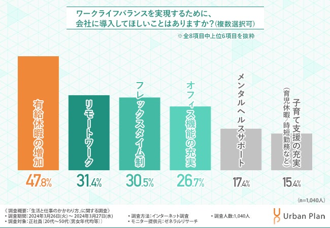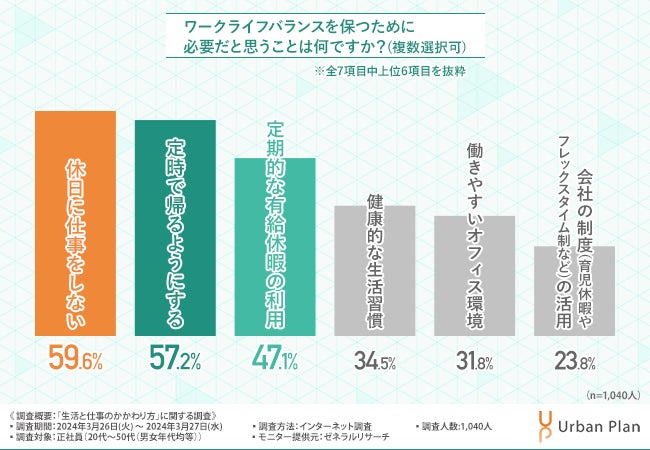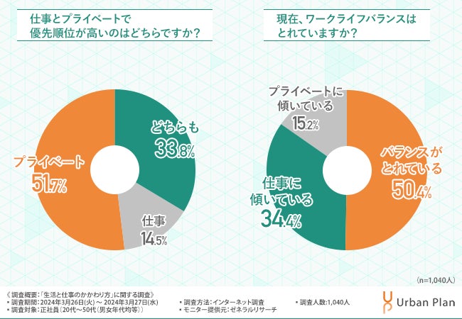 そこで、株式会社アーバンプラン(https://urban-plan.com/)は、20代~50代の正社員の方を対象に「生活と仕事のかかわり方」に関する調査を実施しました。