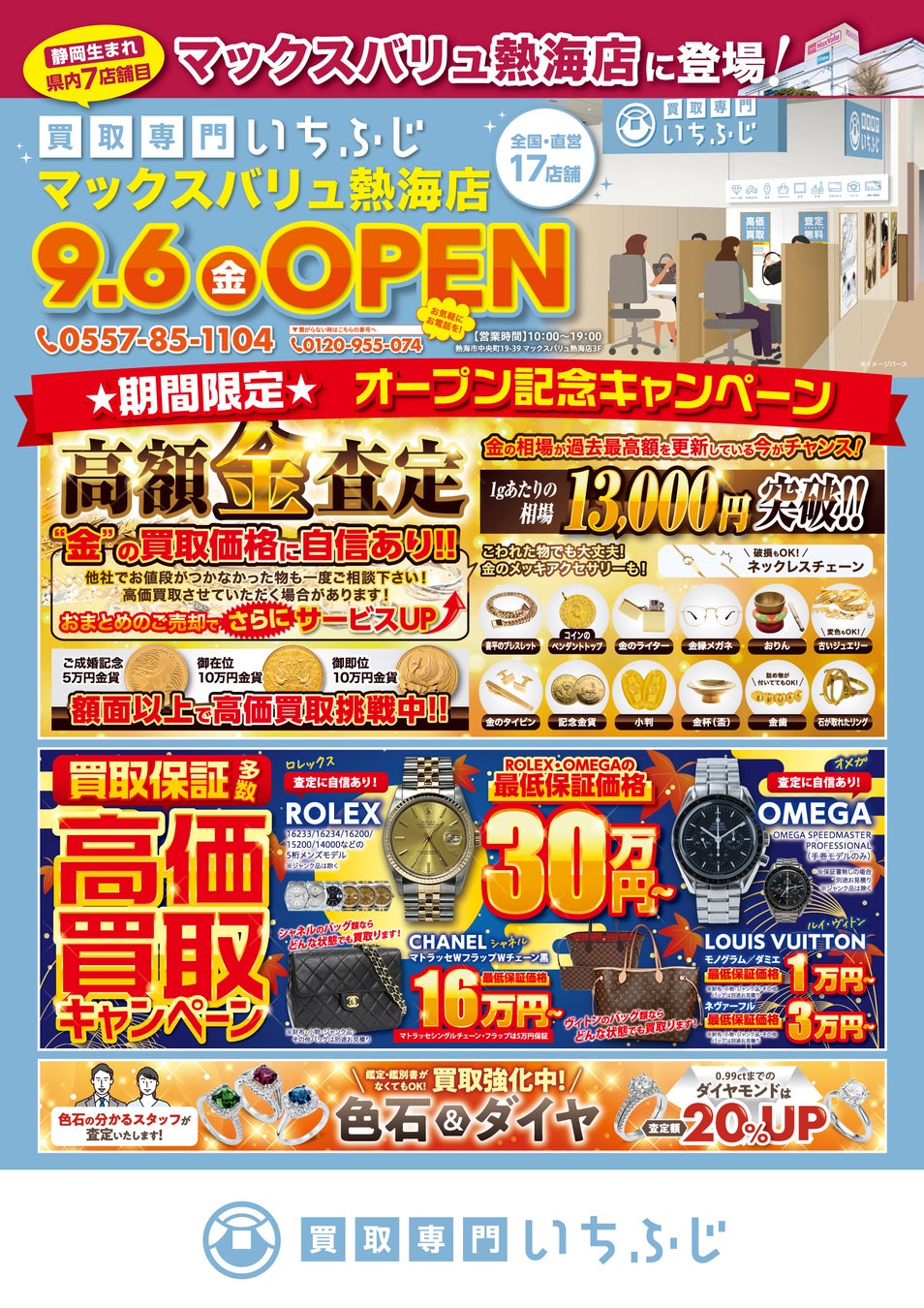 【静岡発祥!熱海市初進出】ブランド・リユースの「買取専門 いちふじ」、静岡県熱海市マックスバリュ熱海店に9月6日(金)新規オープン