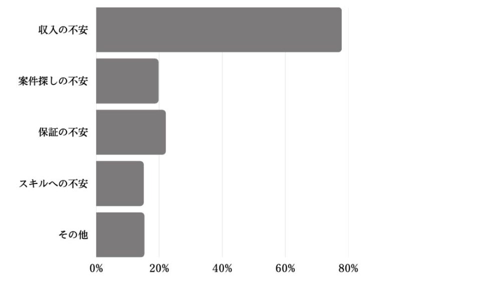 ランサーズの新・フリーランス実態調査 2021-2022年版によると、フリーランス市場は大きく拡大しており、人口は2021年11月時点でコロナ前の2020年と比較して約160%以上も拡大しています。しかし、同調査において、フリーランス人材がデメリットに感じる要素の第一位は「収入の不安」が挙げられています。