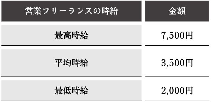 営業フリーランスでも安定した報酬を得られる|営業フリーランスの平均時給は3,500円