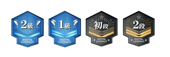 本サービスでは、ITリテラシーなどのレベルに応じて、「2級、1級、初段、2段」という4種類のバッジの発行を予定しています。このバッジにより、社員のITリテラシーにおける理解度などが可視化されるだけでなく、自身のレベルを把握することで学習効率性や継続性が高まります。これらのバッジは、初級レベルから上級レベルまでを、日本人に馴染みのある表現を用いることで理解しやすく設計されています。今後、さらに上級レベルのバッジの発行も計画されています。