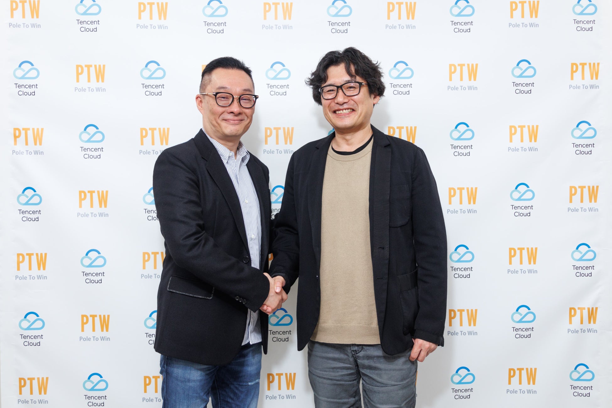 テンセントクラウドインターナショナル シニアバイス プレジデント ポシュー・イェン氏(左)とポールトゥウィン株式会社 代表取締役 CEO 橘 鉄平(右)